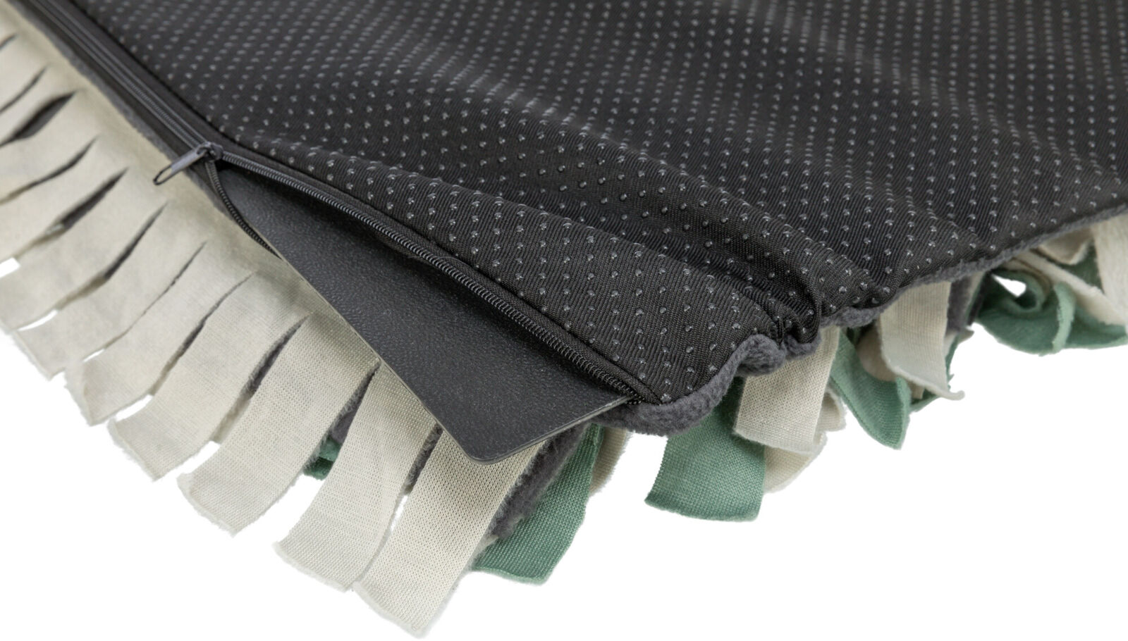 A Trixie Sniffle Mat (32037) egy praktikus és szórakoztató szimat szőnyeg kutyák részére, amely ideális mentális kihívást nyújt a mindennapokban. A szőnyeg felületén elhelyezett két különböző hosszúságú bojtok közé száraz jutalomfalat vagy száraztáp rejthető, amelyet a kutyának szaglása segítségével kell megtalálnia.